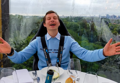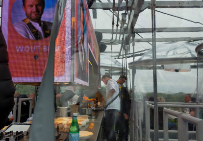 Un dîner élégant dans les nuages « Dinner In The Sky » s'est déroulé en mi-juin à Bruxelles. La plate-forme de cuisson moderne pouvant accueillir jusqu'à 32 personnes était adjacente à l'imposant et légendaire modèle en cristal de fer « Atomium » dans le quartier de Laeken, à la périphérie de la capitale.
