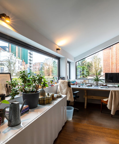 Les fleurs et autres plantes ne seront pas seulement une décoration élégante pour le bureau à domicile, mais aussi un moyen efficace de filtrer l'air ! En plaçant de la verdure près des fenêtres, les rayons du soleil sont diffusés en douceur, ce qui crée une atmosphère de travail agréable. Grâce aux plantes d'intérieur, nous pouvons profiter d'une ambiance saine et naturelle dans notre bureau à domicile et détendre notre vue plus efficacement.