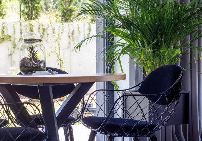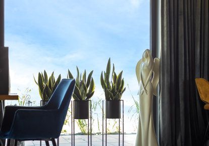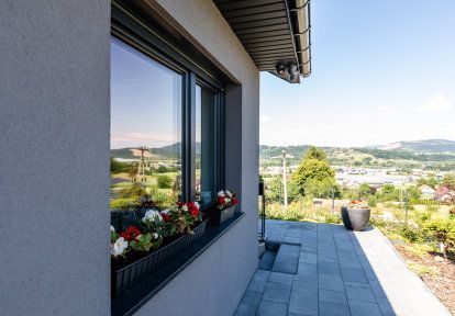 - La porte-fenêtre dans la chambre à coucher est une solution idéale pour les personnes qui souhaitent être proches de la nature et pouvoir sortir dans le jardin dès leur réveil. Les propriétaires de cette maison ont choisi la porte-fenêtre oscillo-coulissante HKS à cette fin. Cette solution permet non seulement d'obtenir un large passage lumineux, mais aussi d'aérer les pièces grâce à la possibilité d'incliner le battant.