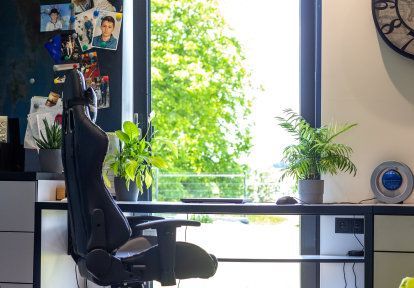 - Pour éclairer au mieux les parties communes de la maison : salons intégrés avec les salles à manger et cuisines ouvertes, les propriétaires ont choisi à la fois des vitrages fixes et des fenêtres oscillo-battantes.