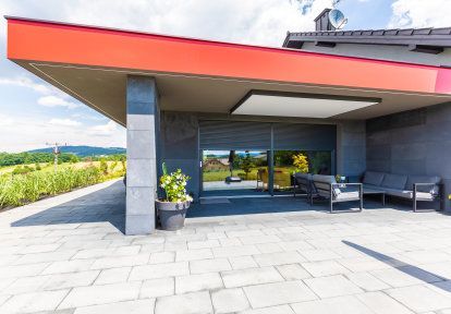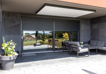 - En outre, des volets roulants extérieurs encastrés ont été installés sur toutes les fenêtres et portes-fenêtres. Leurs principaux avantages sont de protéger l'intimité des habitants, de limiter la quantité de lumière entrant dans les pièces et d'économiser l'énergie nécessaire au refroidissement et au chauffage de la maison.