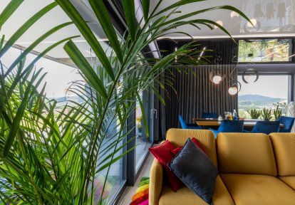 - Les fenêtres en PVC de la série DPQ-82 utilisées dans ce projet offrent non seulement un aspect moderne, mais garantissent également d'excellents paramètres d'isolation thermique et acoustique. Cela rend les intérieurs extrêmement confortables et garantit la tranquillité des habitants.