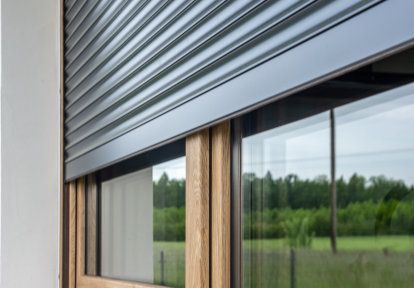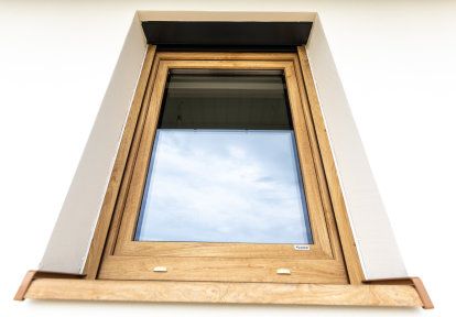 - Toutes les fenêtres de la maison sont équipées de volets roulants encastrés. Lors du choix de leurs couleurs les propriétaires avaient l’intention de les assortir à la couleur de fenêtres et du toit. Les coulisses des volets ont été faites alors en couleur de la menuiserie de fenêtres et le tablier en couleur du toit c’est à dire en gris anthracite.