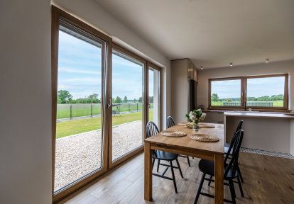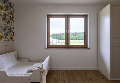 - Les investisseurs ont opté pour les fenêtres oscillo-battantes dans les pièces, où un échange de l’air rapide est recommandé c’est à dire: la cuisine, la salle de bains, la chambre d’invités et dans la chambre d’enfant. Cette solution est particulièrement pratique car lorsque nous sommes à la maison nous pouvons ouvrir la fenêtre en grand pour aérer rapidement la maison, tandis que lorsque nous allons nous coucher ou sortir de la maison, nous pouvons laisser les fenêtres entrebaillées. Dans la chambre principale une porte-fenêtre deux vantaux avec meneau mobile a été installée.