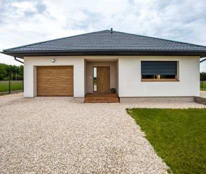 - Dans le corps du bâtiment il y a également un garage dans lequel les propriétaires ont installé une porte de garage sectionnelle à une voiture avec le panneau de 40 mm d’épaisseur motorisée. L’avantage de motorisation est le confort lors de l’ouverture et de fermeture de porte de garage. En utilisant une télécommande ou un clavier à code nous pouvons commander facilement la porte de garage.