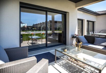 Une réalisation avec la menuiserie aluminium DAKO utilisée dans une maison unifamiliale moderne au sud de la France.