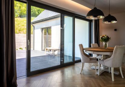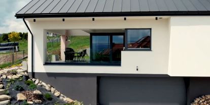 - Un projet individuel de la maison donne avant tout de grandes possibilités de conception qui permettent de créer un espace parfaitement adapté à vos besoins. Les propriétaires de cette maison ont opté pour un grand nombre des espaces vitrés ce qui garantit beaucoup de lumière du soleil pendant la journée. Dans ce cas les espaces vitrés ont aussi une autre tâche importante – garantir des vues impressionnantes sur le massif de Tatras. Les investisseurs ont choisi la menuiserie PVC et la série DPQ-82 qui se caractérise par une isolation thermique et acoustique excellente ainsi que par une très haute qualité de fabrication. Dans la partie commune- la salle à manger, le salon et la cuisine les investisseurs ont décidé de combiner les chassis fixe et les portes-fenêtres ou la baie coulissante HST. Cette dernière est très impressionnante, installée dans la salle à manger ce qui permet une sortie vers la terrasse. La largeur de baie coulissante est de 4,5 mètres.