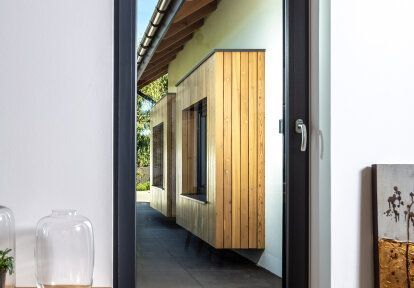La maison a été conçue pour trois personnes - un couple marié avec leur fils d'âge scolaire. Les fenêtres et les portes devaient correspondre à l'aspect moderne du bâtiment et à la décoration intérieure – des meubles simples mais élégantes, des sols en bois, des espaces ouverts. Les clients souhaitaient en particulier que la menuiserie ait de bons paramètres thermiques, pour qu’elle soit adaptée au plan et à la destination des pièces et pour qu’elle donne en même temps un effet esthétique cohérent.