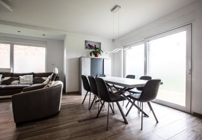 - Obyvatelé obou domů mají přístup do zahrady díky terasovým dveřím HST. Zdvižně-posuvné dveře zajišťují snadnou obsluhu a výborné tepelně – izolační a akustické parametry. Částečně matným sklem bylo provedeno i zasklení terasových dveří v jedné z budov.