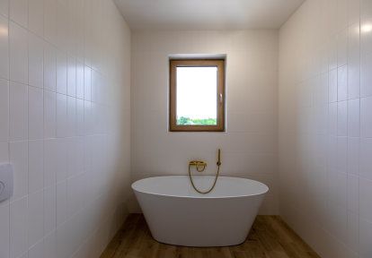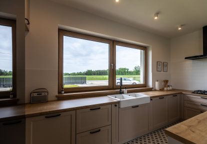 - Investoři se rozhodli pro montáž otevíravě - sklopných oken do místností, kde se doporučuje rychlá výměna vzduchu, tedy do kuchyně, koupelny, pokoje pro hosty a dětského pokoje. Toto řešení je obzvláště výhodné, protože doma můžeme okno otevřít dokořán, abychom dům rychle vyvětrali, zatímco při usínání nebo odchodu z domu můžeme okna nechat pootevřená. V rodičovské ložnici majitelů je osazeno dvoukřídlé balkonové okno s pohyblivým sloupkem.