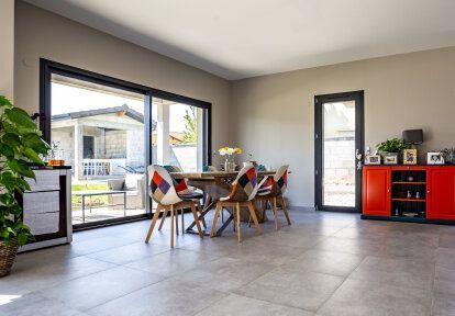 Realizace s komplexními hliníkovými systémovými konstrukcemi DAKO použitými v moderním rodinným domku na jihu Francie.
