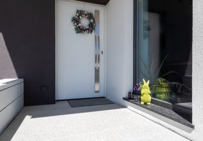 - Záměrem majitelů této nemovitosti bylo zvolit si výrobky v nejednotných barvách. Nejdůležitější při rozhodování o barvě oken, vchodových dveří a garážových vrat však bylo, aby byly všechny tyto prvky ve vzájemném souladu. Na vchodové dveře investoři zvolili bílou barvu, na garážová vrata antracitovou a na okna a terasové dveře nestandardní - tmavě šedý alux, který v kombinaci s šedými kličkami zvýrazňuje moderní design celku.
