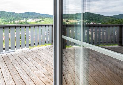 - Relaxujícím hostům je k dispozici terasa, která je přístupná z obývacího pokoje přes jednokřídlé balkonové okno. V ložnicích s balkony v patře se investoři rozhodli pro dvoukřídlá balkonová okna s pohyblivým sloupkem. Chybějící středový sloupek v průchodu na balkon umožňuje pohodlný a široký průchod a zároveň zaručuje nerušený výhled ven.