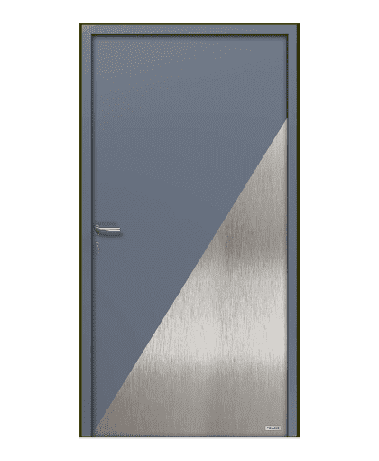 Složení barev a textur. Vnější dveře jsou vyrobeny z panelů zdobených frézováním. Standardně jsou vybaveny aplikacemi z matné a broušené nerezové oceli, obdélníkovým prosklením a dekory. Netradiční návrhy v bohaté výbavě, kde hlavní roli hraje víceúrovňová geometrie a originální dekorace.