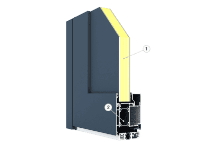2 - Rám křídla – „teplý” profil - rám křídla je vyroben z hliníkového profilu DA 65 (tříkomorový hranol s tepelnou vložkou).