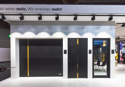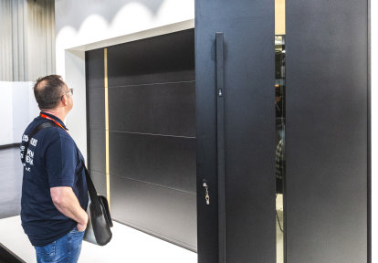 Die speziell zu diesem Anlass ausgewählte Präsentation hat u.a. die Terrassentür mit verdecktem Rahmen DA-SkyLine, die Aluminiumtür mit Aufsatzfüllung DA-90, das Sektionaltor mit 40 mm starken Torpaneelen und mit Führung N und unsere Fassadenjalousien gezeigt.
