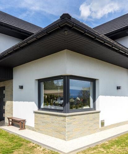Sicherlich sind große Fenster – oft sogar Verglasungen über die gesamte Wandfläche – in modernen Häusern sehr beliebt. Eine solche Fenstergröße erfordert oft die Verwendung eines bestimmten Materials im Herstellungsprozess: Aluminium oder Holz anstelle von PVC. Wichtig ist die Auswahl der richtigen Farben. Denken Sie daran, dass Holzfenster besser zu einem modernen Haus passen, wenn Holz auch für die Fassade oder die Innenausstattung verwendet wird. Dunkle Aluminiumfensterrahmen können hingegen einen schönen Kontrast zu hellen Wänden bilden. Eine interessante Wahl ist auch Fensterrahmen in derselben Farbe wie beispielsweise das Dach.