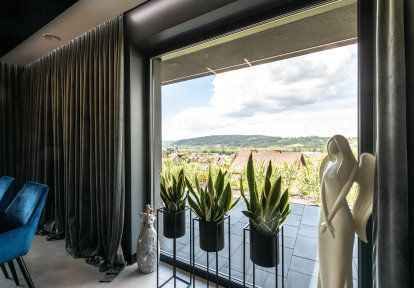 - In allen Fenstern und Terrassentüren wurden zusätzlich Unterputzrollläden montiert. Ihre gröβten Vorteile sind vor allem: Schutz der Privatsphäre, Einschränkung der Menge von einfallenden Sonnenstrahlen und Ersparnis an Energie, die notwendig ist, um das Haus zu kühlen und um zu heizen.