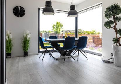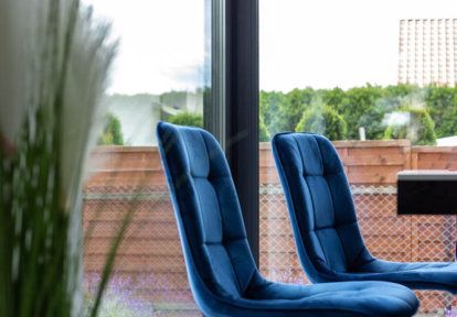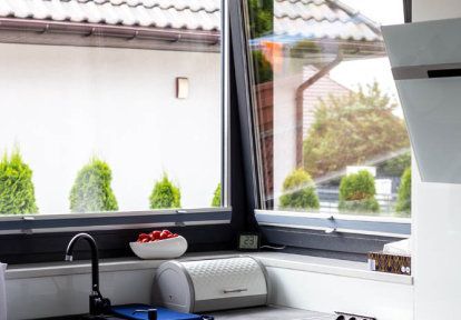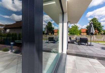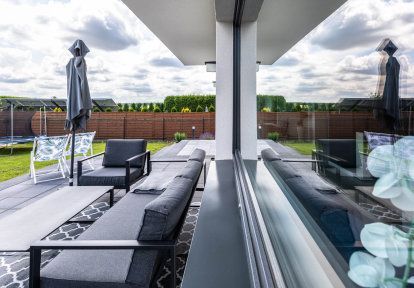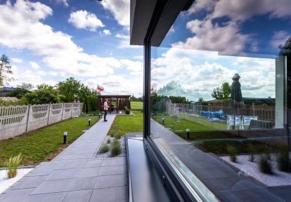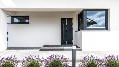 Die Besitzer dieses Einfamilienhauses haben bewusst ein Grundstück in der Nähe des Flughafens gewählt. Das Problem der Lärmbelastung wurde durch Fenster mit sehr guten lärmdämmenden Eigenschaften gelöst.