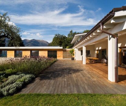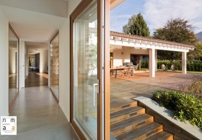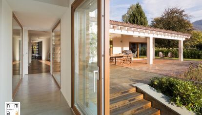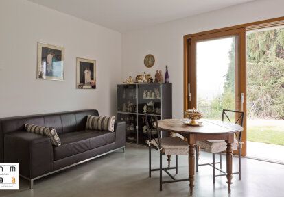 Das Haus, dessen Eigentümer sich für die Fenster und Türen von DAKO entschieden haben, befindet sich in einer außergewöhnlich malerischen Gegend. Das Gebäude ist von Gärten umgeben und einige Fenster bieten Blick auf das Bergpanorama. Die Villa wurde nach den neuesten architektonischen Trends gebaut und eingerichtet - der Entwurf zeigt jedoch auch Inspiration durch klassische Lösungen, die an die aktuellen Bedingungen angepasst sind, z. B. Holzparketts, leicht geneigte Holzdecke oder einen Kamin. Der geräumige Innenraum zeichnet sich durch eine innovative und dennoch gemütliche Einrichtung aus.
