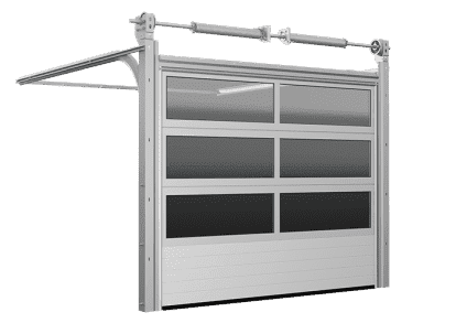 Transparente Paneelelemente sind aus Plexiglas ausgeführt. Die Industrie-Aluminiumtore können in jeder Größe bis zu einer maximalen Breite von 5 m und einer Höhe von 5 m ausgeführt werden.