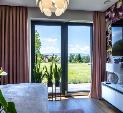 Fenster dieses Typs bieten eine ausreichende Dichtheit und Isolierung und ermöglichen es, die Kosten für die Raumheizung zu optimieren. Ein wichtiges Thema ist auch die Fensterausstattung, die die Sicherheit der Haushaltsmitglieder garantiert. Moderne Technologien in Verbindung mit hochwertigen Werkstoffen ermöglichen die Herstellung von PVC-Fenstern nicht nur in typischen mittelgroßen Größen, sondern ermöglichen auch die Herstellung von Fenstern mit viel größeren Abmessungen. Zu den verfügbaren Lösungen gehören verschiedene Arten von Terrassenschiebetüren oder festen Fenstern (so genannte feste Verglasungen), dank deren der Entwurf unseres Traumhauses völlig einzigartig sein kann und sein Interieur mit natürlichem Licht durch die Fenster gefüllt werden kann.