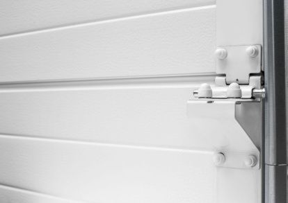 Die Paneelbeschläge und Scharniere sind weiß lackiert (RAL 9016), um sie an das Aussehen der Paneele anzupassen und das ästhetische Erscheinungsbild des Tors auch innerhalb der Garage zu gewährleisten.