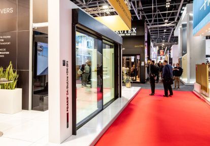 Le stand séduisait également par ses portes extérieures aux décors en pierre naturelle et le coulissant DA-SkyLine commandé par télécommande. La commande à distance de nos produits était également une caractéristique distinctive du stand DAKO. Pratiquement tous les produits que nous avons présentés avaient l'option d'un fonctionnement sans fil DAKO SMART HOME. Parmi les autres produits disponibles sur le stand DAKO, il faut également mentionner les suivants : les fenêtres en bois, PVC et aluminium, la porte a ouvrant caché avec imposte, la porte de garage avec guidage "N" et la porte d'entrée en bois.