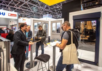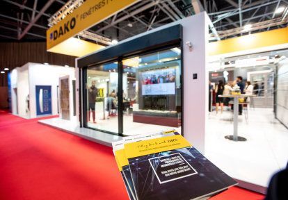 Les invités qui se sont rendus sur le stand DAKO lors du salon BATIMAT ont surtout apprécié l'offre complète, adressée aussi bien à la construction moderne qu'à la construction classique. Les menuiseries conçues dans le cadre de l'idée Harmony Line ont suscité un grand intérêt. Les couleurs bleu marine des fenêtres, volets roulants, portes et porte de garage avec des éléments jaunes, rendait l'ensemble très prestigieux et élégant.