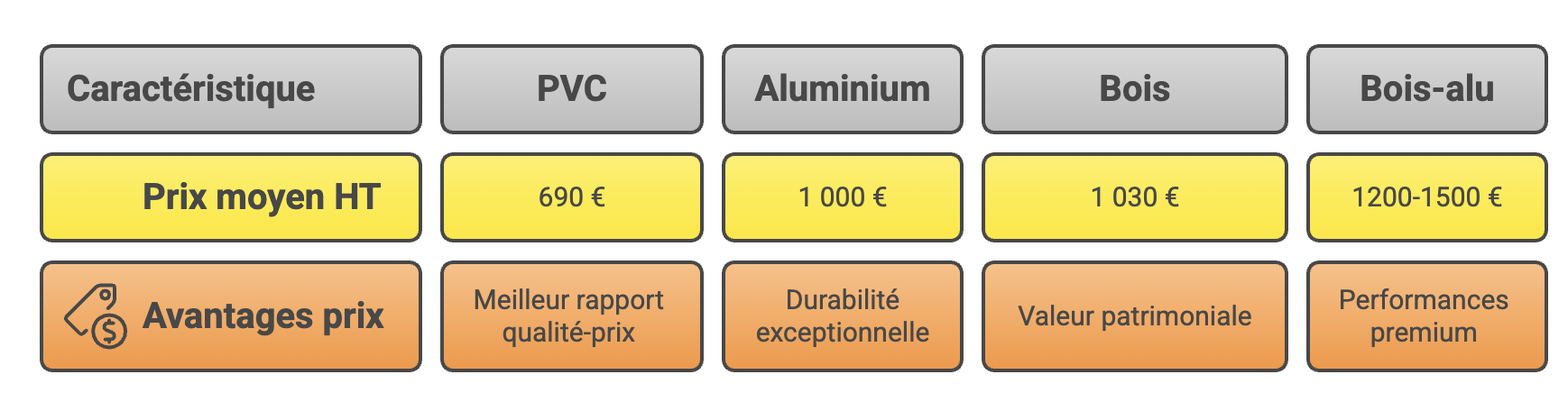Prix selon les matériaux