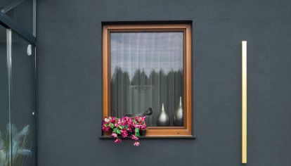 Un choix courageux de la couleur de la menuiserie fait que ses éléments gagnent un aspect original et individuel. Lors du choix des fenêtres, nous nous concentrons principalement sur leurs paramètres techniques et sur la couleur. Cependant le choix des poignées est traité comme une activité secondaire à laquelle nous accordons moins d'importance. Toutefois, il vaut la peine que la décision soit bien réflechie car la couleur et la forme de la menuiserie auront un impact sur le design de l'ensemble de la fenêtre. Il est encore plus important de choisir un bâton de maréchal approprié pour la porte à ouvrant monobloc. Les propriétaires de cette maison individuelle ont choisi les accessoires qui attirent l'attention par leur couleur qui va bien avec tous les éléments de la menuiserie.