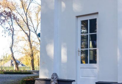 • L'ensemble de la menuiserie du manoir a été réalisé dans une couleur blanche classique, qui souligne l'élégance et l'histoire uniques du bâtiment.