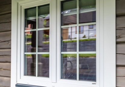 - L'objectif principal des propriétaires lors de choix de menuiserie était de garder de hauts paramètres d'isolation thermique de l'ensemble de construction. La solution qui a répondu aux objectifs étaient les fenêtres PVC de série DPQ-82 avec des petits bois. Cette série de fenêtres assure une excellente isolation thermique en hiver comme en été. Par contre les petits-bois incorporés soulignent le style de la maison. La façon d'installation des petits-bois à l'étape de production fait qu'ils n'empêchent pas dans l'entretien de fenêtres tout en étant d'une élégance exceptionnelle.