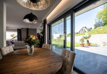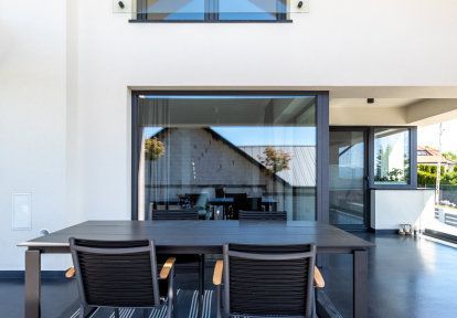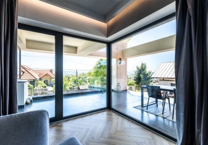 - Un projet individuel de la maison donne avant tout de grandes possibilités de conception qui permettent de créer un espace parfaitement adapté à vos besoins. Les propriétaires de cette maison ont opté pour un grand nombre des espaces vitrés ce qui garantit beaucoup de lumière du soleil pendant la journée. Dans ce cas les espaces vitrés ont aussi une autre tâche importante – garantir des vues impressionnantes sur le massif de Tatras. Les investisseurs ont choisi la menuiserie PVC et la série DPQ-82 qui se caractérise par une isolation thermique et acoustique excellente ainsi que par une très haute qualité de fabrication. Dans la partie commune- la salle à manger, le salon et la cuisine les investisseurs ont décidé de combiner les chassis fixe et les portes-fenêtres ou la baie coulissante HST. Cette dernière est très impressionnante, installée dans la salle à manger ce qui permet une sortie vers la terrasse. La largeur de baie coulissante est de 4,5 mètres.