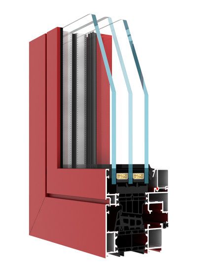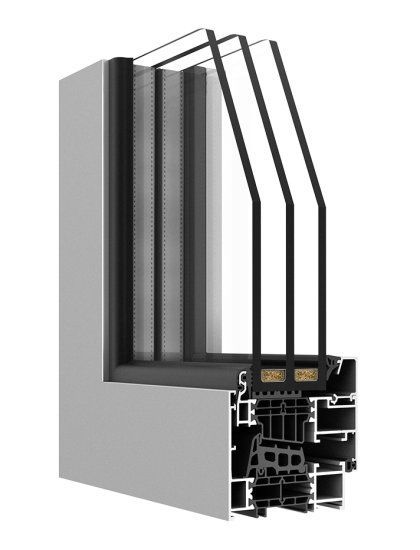 Profilés à trois chambres, dont la partie centrale est la chambre isolante située entre les inserts thermiques de 43 ou 42 mm de largeur.