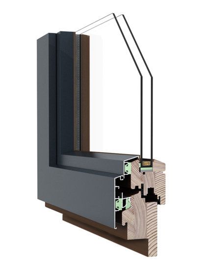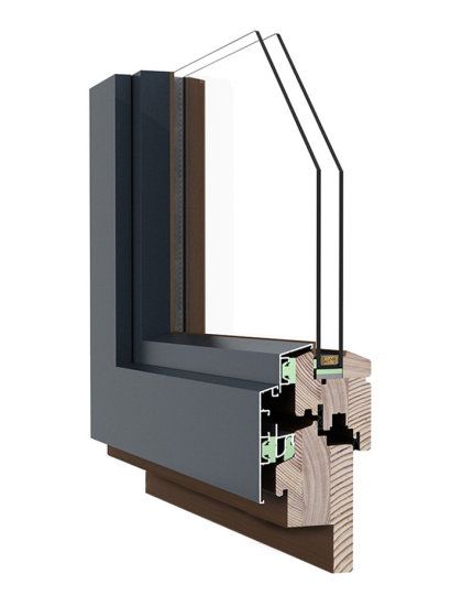 La beauté noble du bois enrichit des intérieurs en leur donnant du caractère élégant et prestigieux et le capotage en aluminium permet presque chaque finition de fenêtres, tout en les protégeant contre les intempéries.