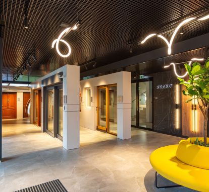 Lo spazio espositivo comprende quasi 1.000 m2 di esposizione completa di prodotti, i loro allestimenti, colori e accessori. Tre piani in cui viene presentata l'intera gamma di finestre e porte in PVC, alluminio e legno, oltre a portoni da garage e coperture esterne. I clienti commerciali DAKO hanno qui l'opportunità di vedere dal vivo tutte le soluzioni del marchio, insieme agli accessori dedicati e alle opzioni di design. Lo showroom offre pure uno spazio per gli incontri, nel quadro di meeting d’affari o di corsi di formazione per i partner commerciali del marchio.