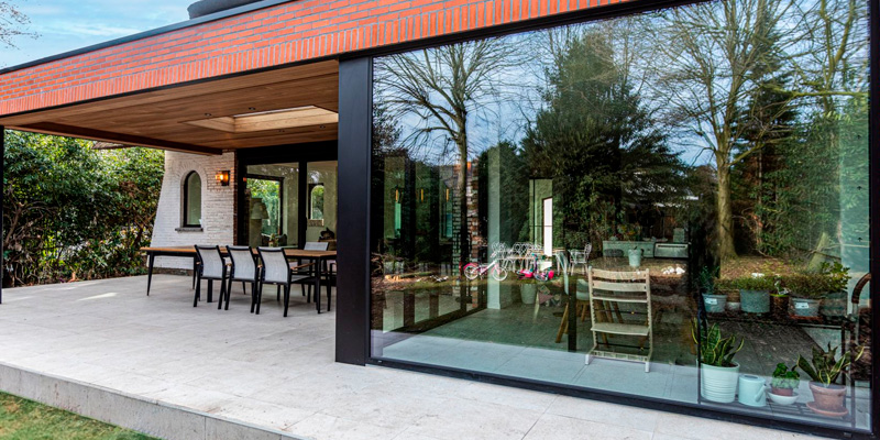 La soluzione? Finestre in alluminio con vetri di grandi dimensioni, offrendo un effetto visivo di continuità con l’ambiente circostante, una vista libera e una salutare quantità di luce naturale.