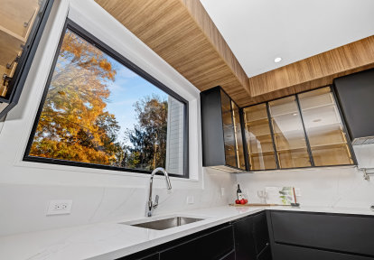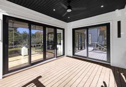 Questa realizzazione, ricca di vetri diversi e di innovazioni nascoste, è la prova migliore che il bianco e nero non deve per forza essere noioso! Il nostro prossimo cliente soddisfatto è il proprietario di una casa unifamiliare di Upper Saddle River, nel New Jersey. Responsabile dell'esecuzione dell'ordine è stato il partner commerciale DAKO locale, Fox Windows dagli Stati Uniti.