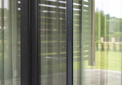 Il facile accesso dal soggiorno alla terrazza su entrambi i lati è garantito dalla porta scorrevole a ribalta HKS. Gli elevati parametri di isolamento non sono gli unici vantaggi di questa soluzione. La struttura di questa porta finestra consente di abbassare l'anta mobile, garantendo una ventilazione ottimale senza doverla aprire completamente. Nelle porte finestre sono state installate anche delle zanzariere scorrevoli.