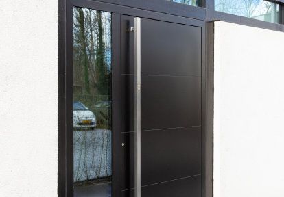L'elemento di serramenta che dà carattere alla facciata di qualsiasi edificio è la porta d’ingresso. Il comfort e la sicurezza degli occupanti dipendono dai parametri di isolamento termico, acustico e dalla protezione antieffrazione assicurata dalla porta. I proprietari di questa casa hanno scelto la porta rivestita in alluminio DA-77N, modello NOEL con un vasistas laterale. La superficie liscia dell’anta esterna, con una delicata goffratura orizzontale e un lungo corrimano verticale, sottolinea lo stile moderno dell’intero edificio. Oltre ad allargare otticamente la porta in modo che la sua larghezza corrisponda a quella della finestra sovrastante, il vasistas laterale serve anche ad illuminare il vestibolo.