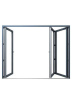 Nella scelta delle porte terrazza che danno sul giardino, i proprietari hanno optato per una soluzione particolarmente moderna e di grande impatto – le porte a fisarmonica. Il loro metodo di apertura è del tutto differente da quello delle porte scorrevoli standard: le singole ante sono ripiegate sul bordo laterale per garantire la massima dimensione di passaggio. La divisione uniforme dei vari elementi della porta si adatta perfettamente al design simmetrico dell’edificio.