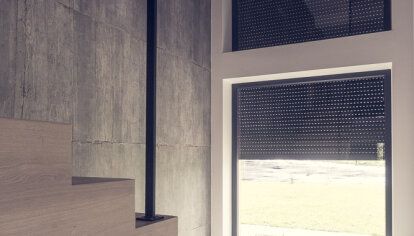 Una casa grande richiede finestre di diversi tipi e dimensioni. Possiamo trovare qui sia le tipiche finestre ad anta ribalta che le porte scorrevoli e le vetrate fisse. Quasi tutte le finestre sono dotate di un sistema di avvolgibili ad azionamento automatico. Gli investitori hanno deciso in fase di progettazione che volevano avere gli avvolgibili, motivo per cui la casa dispone di un sistema da incasso in cui i cassonetti sono esteticamente nascosti sotto la facciata.
