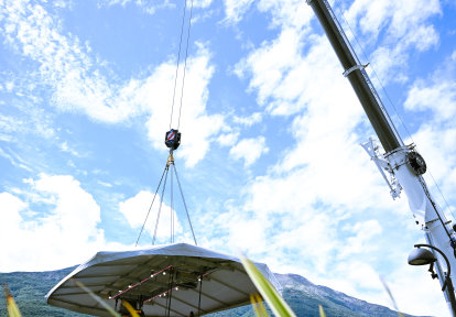 Un fantastico pranzo nella zona "Dinner In The Sky" si è svolto nell'incantevole Dervio, su uno dei laghi italiani più belli: Como. Nonostante le condizioni meteorologiche sfavorevoli, la forte pioggia e il vento, l'organizzatore ha messo a disposizione dei partecipanti un posto tranquillo nella zona "Dinner In The Sky". Grazie agli sforzi degli organizzatori, poco dopo pranzo sono riusciti anche ad alzare la piattaforma panoramica e portare in cielo i partecipanti, che da lì hanno ammirato il cielo che si schiariva.