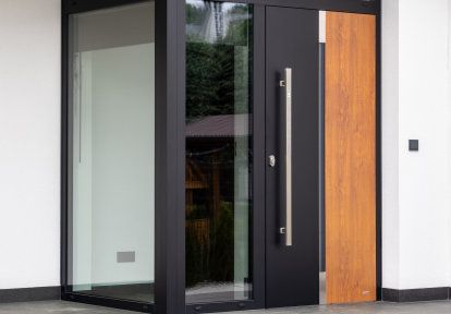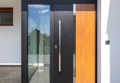 - De voordeur is een van de belangrijkste elementen in een huis,. Ze is als het ware ons persoonlijk visitekaartje. De eigenaars van dit object kozen uit het rijke gamma aan aluminium deuren dat DAKO aanbiedt, het vleugeloverdekkende model EUNIKA uit de serie DA-77N, met een bovenlicht. De deur isoleert uitstekend, en bevat enkele uiterst moderne accessoires. Een daarvan is de vingerafdruklezer die in de verticale deurtrekker gemonteerd is. Zo kunnen de bewoners, die hun vingerafdruk geregistreerd hebben, ongehinderd en zonder sleutel het huis betreden. Deze oplossing is zeer handig, en ook erg veilig. Hert gekozen model EUNIKA gaat uit van een verbinding van klassieke kleuren, in dit geval een kleeffolie in gouden eik en een matzwarte lak, met sierelementen uit edelstaal.