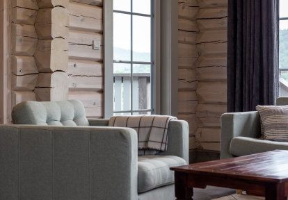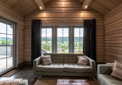 Huizen uit volhouten balken hebben een bijzondere charme. Een enorm voordeel van hout is bovendien de uitzonderlijke omgang met warmte. In de zomer warmen de ruimtes langzamer op, tijdens de winter beschermt hout zeer goed tegen het verlies van warmte. Intrigerend is ook het design van zulke woningen. De interieurs ogen zeer intiem. Als bewoner van zo een huis kan je niet dichter bij de natuur zijn. Het huis dat we hier tonen, wordt aan toeristen verhuurd. Doelbewust werd voor een Scandinavische, landelijke stijl gekozen. Typisch voor die regio zijn ramen in zeer heldere kleuren. De investeerders opteerden voor kunststof om een uitzonderlijk goede thermische isolatie te verkrijgen.