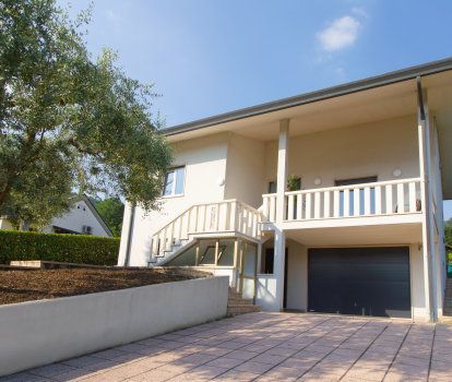 Typisch voor mediterrane huizen is vanzelfsprekend het gebruik van heldere, meestal witte tinten. Ook hier werd gekozen voor een gevel in beige waarbij witte ramen en balkondeuren goed passen. De bouwheer koos voor meerdere producten uit het aanbod van DAKO.