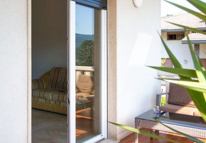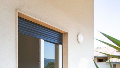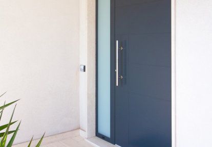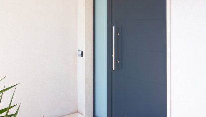 De rolluiken werden al tijdens de constructie van de ruwbouw onder de gevelbekleding gemonteerd. In het warme klimaat rond de Middellandse Zee zorgen ze voor een beperking van het zonlicht. Daarnaast schrikken gesloten rolluiken inbrekers af. - Voordeur – model BONA