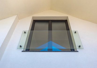 - Vanuit de keuken, de grote slaapkamer en de eetkamer komt men op het terras via enkel- en dubbelvleugelige balkondeuren. In de fitnessruimte op de eerste verdieping werden zogenaamde "Franse" balkonramen geplaatst.
