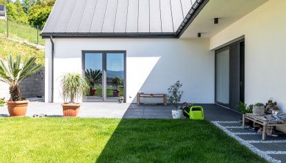 - Een eigen, uniek plan geeft de architect de kans om de woning volledig aan de wensen van de bouwheer aan te passen. In dit geval kozen de eigenaars voor een groot aantal beglazingen, die veel zonlicht gedurende de dag verzekeren. Wegens de ligging van dit huis speelde nog een ander voordeel een belangrijke rol – een vrij uitzicht op het aan de horizon opdoemende Tatra-gebergte. De investeerders gingen voor buitenschrijnwerk uit kunststof. De keuze viel op DPQ-82, een serie die uitblinkt wegens zijn geluidswerende en energie-efficiënte eigenschappen. In de gemeenschappelijke ruimtes – woonkamer, zitkamer en keuken – werden vaste beglazingen gecombineerd met balkon- en hefschuifdeuren. Bijzonder indrukwekkend zijn deze laatste in de woonkamer, die naar het terras voert. Ze zijn ruim 4,5 m breed.